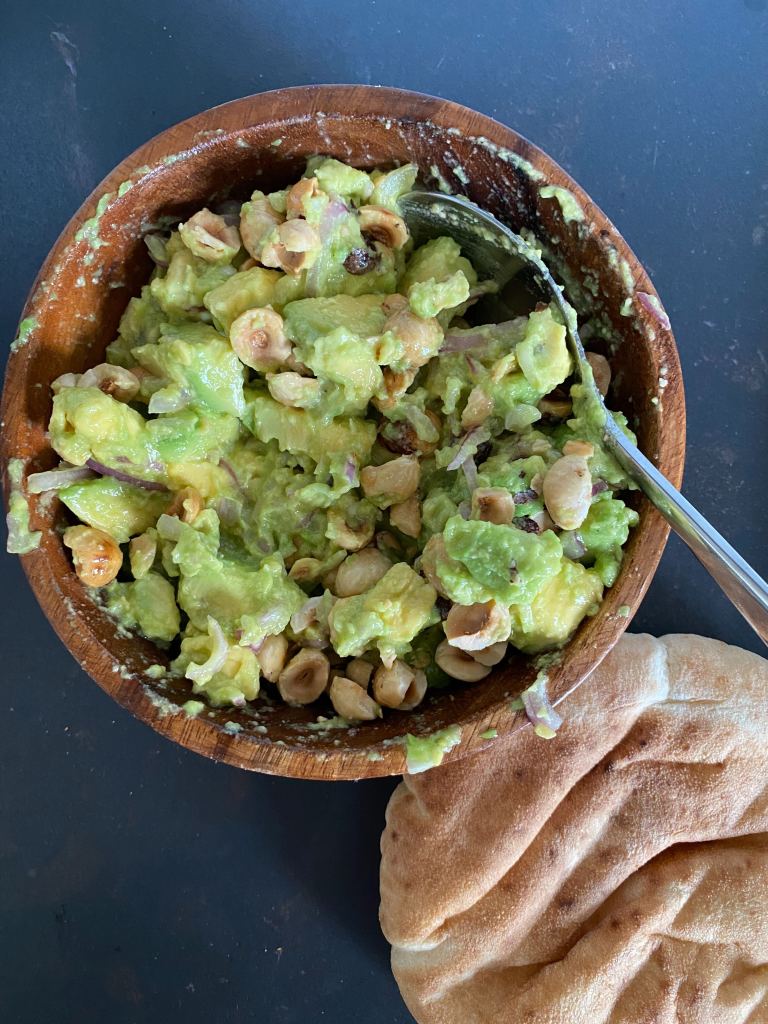 from me! I improvised a recipe by thinking of what builds a good salad, soft, fat, acidity, crunch, and smelling the different nut packages. I’m proud of it.