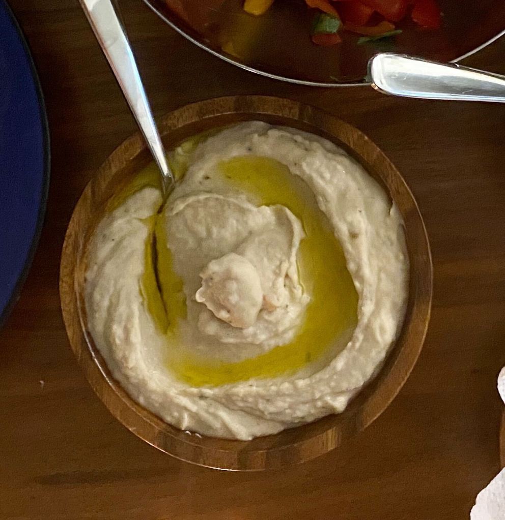 - Food processor or hand-held blender: beans, half of the roasted garlic, broth, olive oil, lemon juice, rosemary. Blend until smooth. Season to taste with salt and pepper.